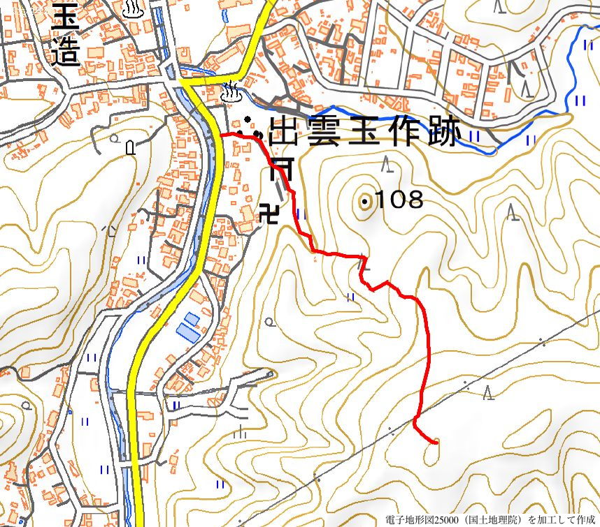 | 玉湯町玉造 10:52 金刀比羅宮への径の十字路 | 十字路を左へ入る。 | 10:53 |