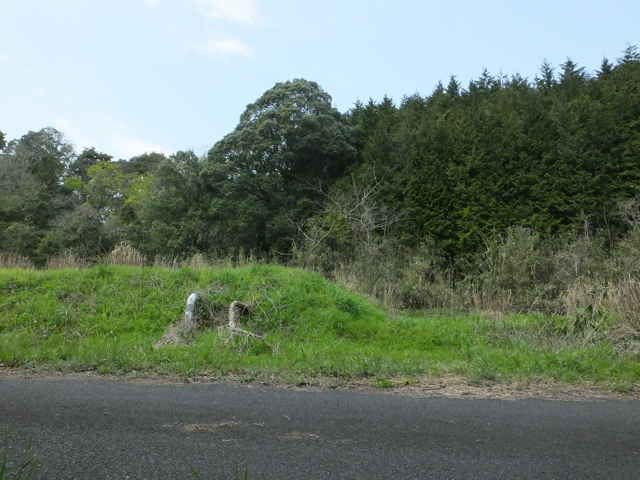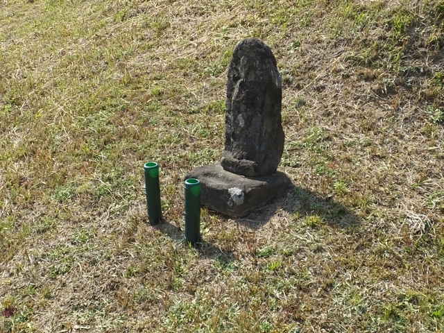| 玉湯町玉造 16:19 道路脇斜面の上に石柱がある。 |
