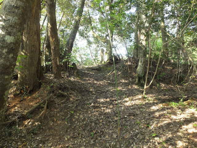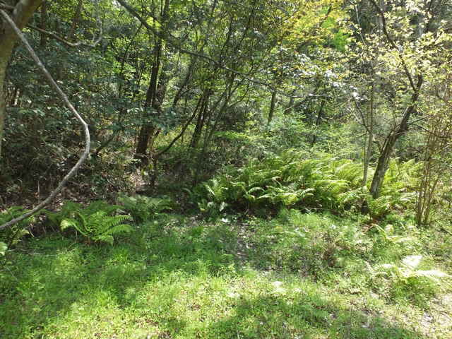 | 2020年4月21日に歩いた一崎〜布志名への旧道の入り口を谷の作業道から入っていましたが、旧道は尾根を通っていたようなので、確認してみました。 市道から谷へ入ったところの右手の民家の入口から尾根に向かいました。民家の入口は、近年に車が入れるように削られているので、以前の入り口は定かではありませんが、入り口にある墓地の近くから入ってように思われます。 尾根の林内には広い径が続いており、一部踏み跡が不明になるところもありますが、15分ほどで玉造支線鉄塔No.3につきました。鉄塔からは4月21日に歩いて確認済みです。 農作業をしていた方(80歳)の話では、「昔は尾根に径があり、広い径があった。布志名から(へ)嫁いだお嫁さんも、普通の道は大回りになるので、尾根径を歩いて来ていた。」とのことでした。 |