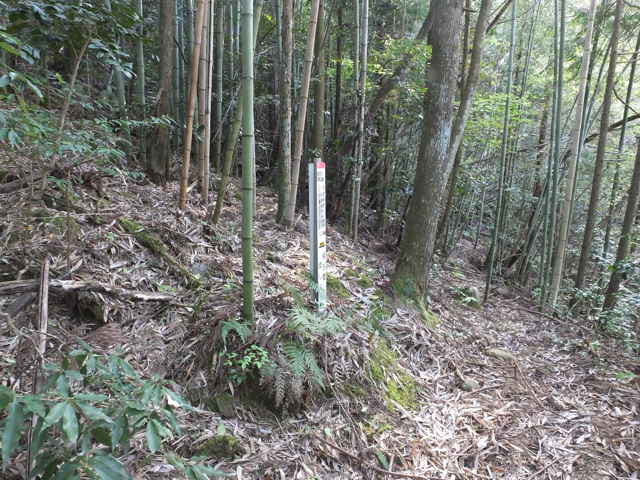 | 玉湯町玉造 9:39 案内標識がある。 | 9:40 竹林を抜け林間の斜面を上る。 | 9:41 急坂を上る。 |