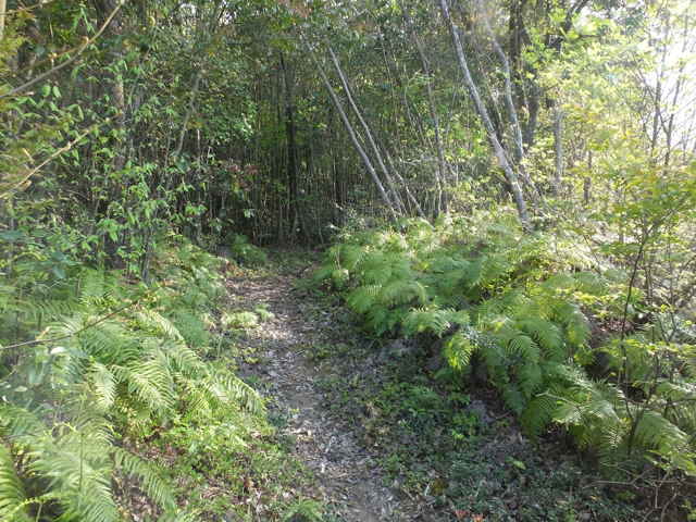 | 玉湯町玉造 16:09 忌部への旧道と交差し、向いの斜面を上る。 | 急な斜面を上る。 | 16:10 斜面を上がると平坦な径がある。 |