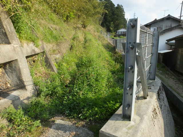 | 玉湯町玉造 16:28 斜面の上のフェンス脇を下がる。 |
