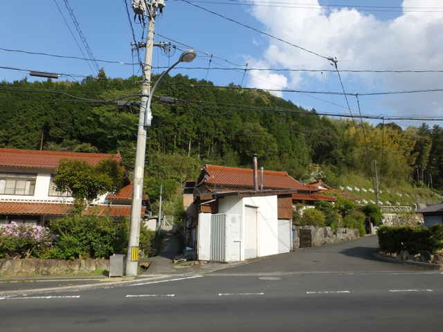 | 西忌部町 15:04 道路脇の茂みに一丁地蔵がある。 | 15:08 峠の手前を谷へ入り、鉄塔No.27へ向かう。 | 15:10 舗装道路が終わる。 |