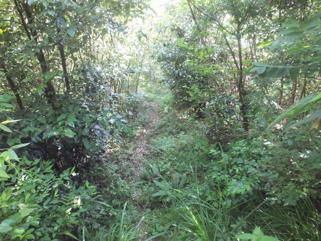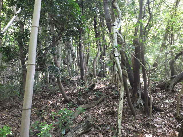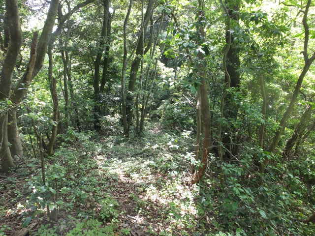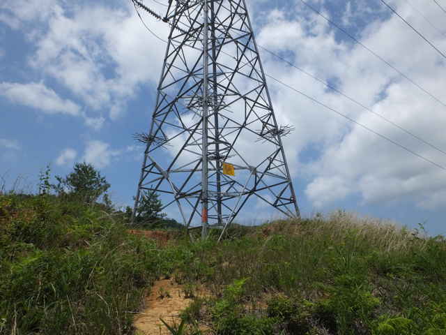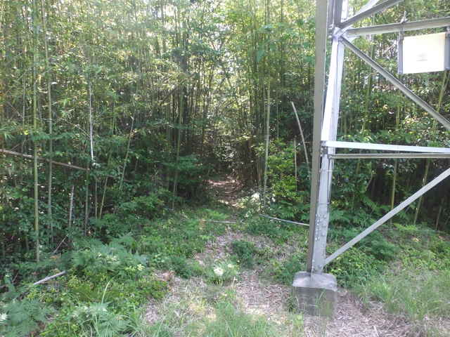 | 長海町の林道馬見谷線を長海神社から少し上がった左側の山へ向かって鉄塔の巡視路があるのを以前からわかっていたので、歩いてみることにしました。 林道脇には標識がありませんが、林内へ入るとすぐ巡視路の標識があり、鉄塔No.34への巡視路を指しています。急斜面を4分ほど上がると、鉄塔No.34があり、忠山のアンテナや手前の鉄塔No.35が見渡すことができます。鉄塔の手前から巡視路は下がっており、急斜面を谷まで下がり、川を渡ります。鉄製の橋の先が川の中に落ちており、どういう状況で橋が架かっていたのか不明です。川を渡りすぐ右に踏み跡があり、その先に巡視路標識がありました。標識から少し進むと、右の斜面に標識があり、山の斜面を上がって行くと、竹林の中に大きな岩があり、その脇を進んでいきます。 斜面に沿って谷を上がって行くと、巡視路標識がありますが、谷には草が多くなり、径らしきものが全く見えなくなってしまいました。谷を上がったり下がったり踏み跡を探すと、標識から少し上がって、谷の左側に踏み跡が上がっていました。また踏み跡がなくなり、谷の中を上がって行くと、谷の中に標識があり安心しました。 5分ほど上がると谷が分岐するので、左の急斜面の谷を上がりました。やがて前方が更に急斜面になってきますが、右へ踏み跡が折れ、さらにつづら折れに上がって行くと、尾根道に上がって、すぐに鉄塔No.33へ上がってきました。鉄塔からは中海方面が見渡すことができ、江島や大根島が見えました。 鉄塔の奥からわずかに踏み跡が見え、また林内へ巡視路が続いています。巡視路はすぐに左へ折れて下がっていき、一旦開けた場所へ出て、中海の大根島などが見渡せました。ここから急斜面を下りて、また林内へ入り巡視路標識を過ぎて2分ほどで左折し、シダの多い径を進みます。 5分ほど巡視路を下がると、標識があり、右折し、湿地を行くと川を渡るようになります。川を渡ったところで、シダの中に踏み跡は見えなくなってしまいました。谷は分かれており、方向がわからなくなりましたが、左の尾根筋に踏み跡が上がっているように見えるので、向かってみることにしました。(本当は、右の尾根に巡視路がありました。) 急斜面の尾根筋にはなんとなく踏み跡があり、15分ほど上がるとピークにつきました。ピークには壊れた石造りの祠のようなものがありました。何かが祀られていたのでしょう。ここから尾根を10分ほど進むと、巡視路の標識があり、その右に巡視路が下がっていました。どこから上がってきているのか、確かめようと下がってみました。下がったところは、先程急斜面の尾根筋へ向かった谷で、右の尾根筋に巡視路があったようです。 再度、下りてきた尾根筋を上に向かって上がりました。急な長い階段を上がり、12分ほどで先程の尾根の標識へ出会いました。ここから1分ほどで、鉄塔No.32へつきました。 鉄塔の奥から巡視路は続いており、苧山の頂上の手前で峠を越えて、下って行きました。この下りの斜面の途中に右へ向かうテープが結んであり、先を確かめようとしましたが、藪の中になるのでやめました。斜面を下がると、すぐに鉄塔No.31がありました。 鉄塔の奥から踏み跡が下がっていますが、草が生い茂って、踏み跡も見えず藪状態です。藪を抜けると、伐採後の開けた斜面で、草やカラスザンショウやタラノキの幼木が多く、下手に触ると痛い目にあいます。なんとか斜面を下がって谷へ下りて行くと、草むらに巡視路の標識がありました。谷沿いに林内へ入ると踏み跡があり、標識からは斜面の細い径を進んでいくと、溜池跡があり、その堤塘が巡視路になっていました。密生した竹林の間を抜けると、開けた場所に標識があり、一段上に上がると柿畑に出てきました。 柿畑の中を抜け、作業道から麓へ下がると市道へ出てきました。山を振り返って見ると、山の端に鉄塔があり、調べると鉄塔No.30でした。柿畑からまっすぐ下りてしまったので、最後の鉄塔へ行く径を通り過ぎてしまったようです。 鉄塔巡視路は何箇所も歩いていますが、その中でも最も径がわかりにくい巡視路だと思います。特にNo.33へ向かう谷沿いの径や、No.31から下りる斜面は全く径がないので、迷ってしまったのではないかと不安になります。 |