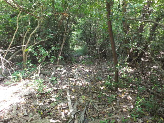 | 15:32 標識がある。 | 枕木町 15:33 | 15:34 溜め池跡の堤塘に巡視路がある。 |