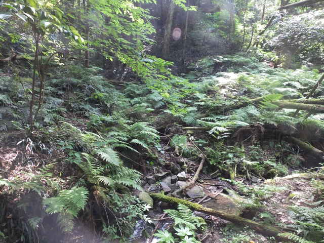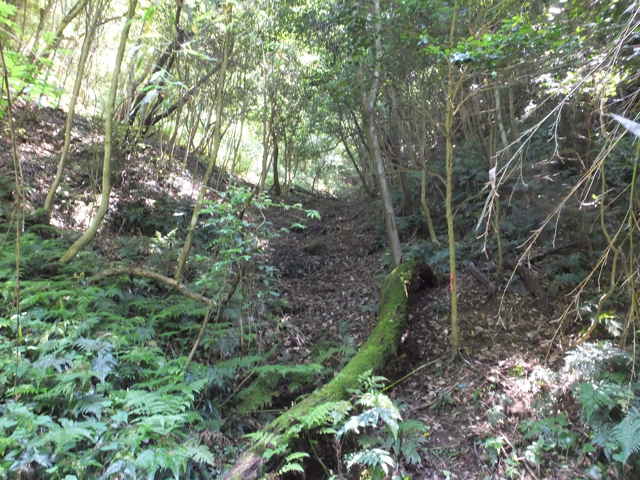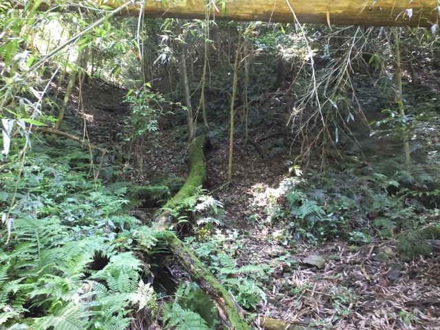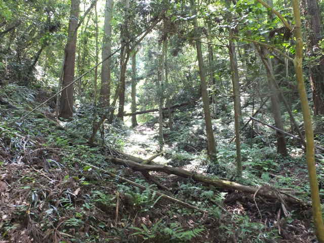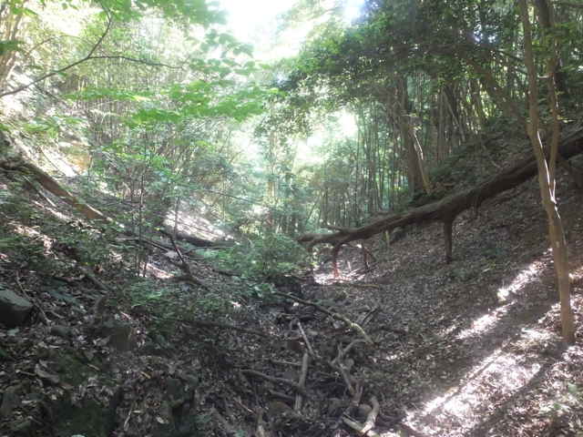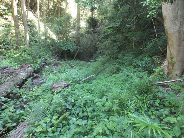 枕木町 15:27 谷へ下りて、谷沿いを下がる。 | 15:28 林内へ入ると踏み跡が見える。 |