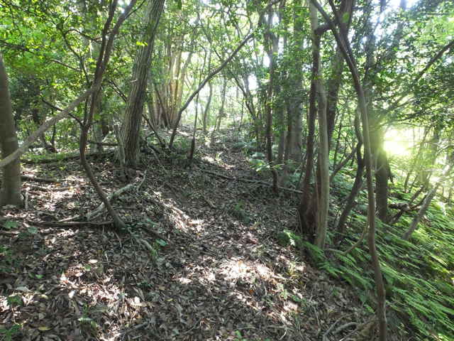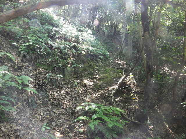 | 14:13 急傾斜の尾根を上がる。 | 長海町 14:16 なんとなく踏み跡が続いているようだ。 | 14:18 傾斜がきつくなる。 |