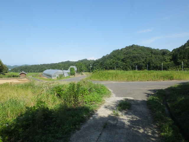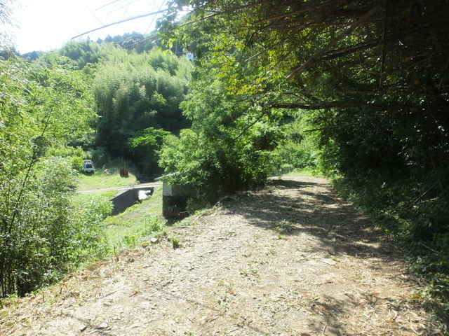 | 15:46 市道へ合流した。 | 枕木町 15:47 下りてきた作業道を振り返る。 | 山の端にある鉄塔No.30は見逃した。 |