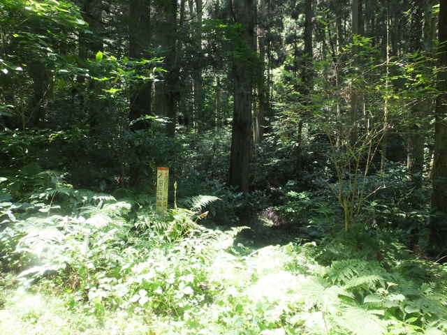 | 新庄町 12:31 鉄塔はクズに覆われ近づけない。 | 12:43 林道へ引き返し、先へ進む。 | 12:46 カーブの手前の左に標識があった。 |