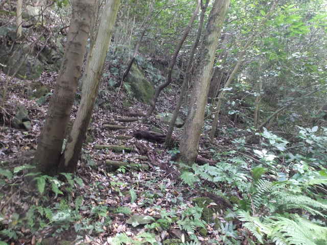 | 新庄町 13:03 斜面を周り、隣の谷へ出る。 | 谷を上がる。 | 13:06 尾根へ上がってきた。 |