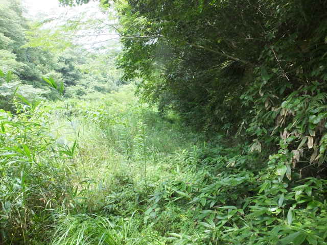 | 八雲町 12:16 | 12:17 すぐ右へ折れて谷へ向かう。 | 12:19 作業道は行き止まり、草地に踏み跡がある。 |