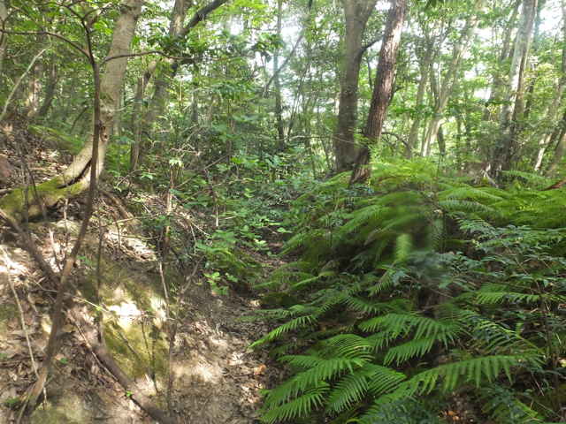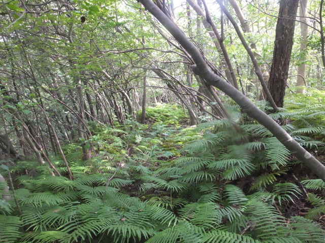 | 八雲町 14:08 シダが密生している。 | 14:10 シダのない径に出会う。 | 14:14 |