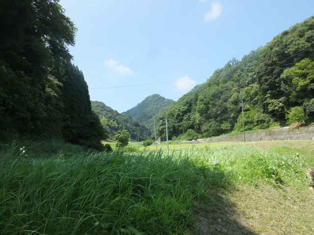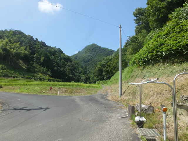 | 八雲町宮内 熊野大社上の宮跡付近の橋を入る。 | 12:58 蛇山への谷を上がる。 | 13:01 最奥の民家の前の水田脇を進む。 |