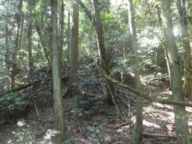 | 八雲町 12:02 尾根に上がる。 | 西側斜面は伐採されている。 | 12:04 尾根を下がってみる。 |
