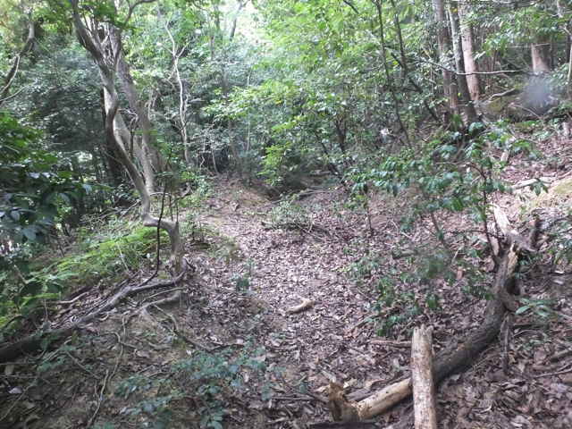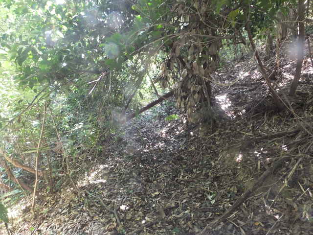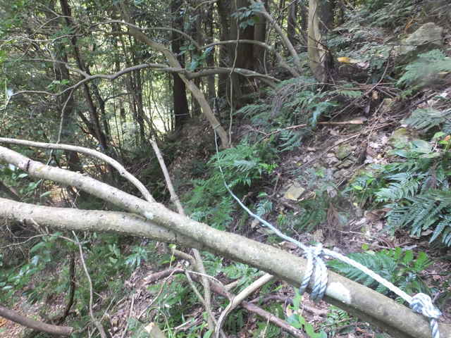 | 東持田町 12:37 | 左の急斜面を上がる。 | 12:51 急斜面にロープを張った。 |