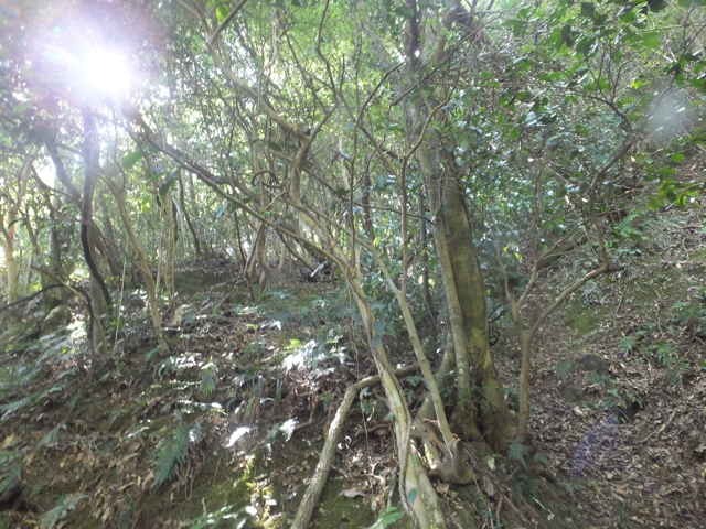 | 東持田町 13:49 急斜面をよじ登る。 | 13:52 木がまばらで手を伸ばしても届かない。 | 13:58 |