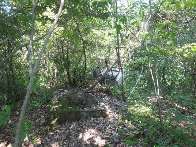 | 八雲町 12:27 小ピークから次のピークへ向かう。 | 12:30 シダが多くなる。 | 12:37 ピークに倒壊したアンテナ施設?があった。 |