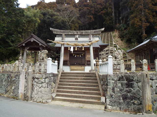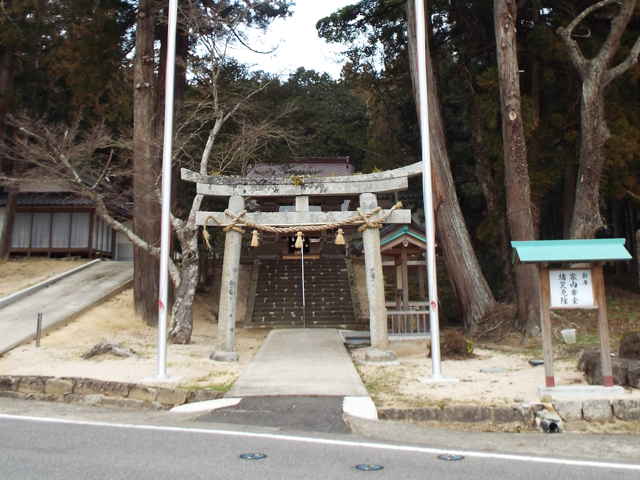 | 大垣町、岡本町、秋鹿町の神社を訪ねてみました。 森清神社、神社の扁額には「森清大明神」とありました。この神社の本宮が山の中にあるということで、祭祀をしておられる内神社で場所を訪ねました。概ねの場所はわかりましたが、集落へ入ったところで、作業中の方がおられたので再確認をしてみました。教えられたとおりに、山へ向かうと、先日の雪で倒れた竹が径を覆っているところもありましたが、無事に本宮までたどり着けました。大きな岩の横を上がると、根っこがコブ状になった大きなタブノキが祀られていました。 秋鹿町を北へ上っていると、山中地区の道端にお堂があり、近所の方に聞いてみましたが、「高祖寺さんがお祀りされているが、よくわからない。昔、行き倒れた人を祀ったものだと、親に聞いたことがある。」とのことでした。 魚瀬トンネルへの分岐の手前から左へ分岐すると、急な坂道が続きます。自転車を押しながら、標高170mほどまで上がると、北東へ尾根が伸びています。尾根の道を400mほど歩くと木山神社がありました。木製の鳥居をくぐると、手水鉢と石灯篭が1基あり、小さな社が迎えてくれます。非常に雰囲気のいい神社でした。 松江の神社 |