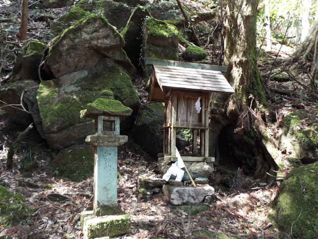 | 今日は、先日から歩いている八雲町の神社を調べていると、八雲村誌に「多くは合祀された神社の中で、今でも地元で祀られている神社がある」というので、探してみることにしました。 東岩坂安田の岡ノ目社、別所宮田の河内社、西岩坂元田の築貫神社、青木の産魂神社、桑並中組の愛宕神社、金比羅神社、下組の瀧谷社、秋吉畦通の金刀比羅社ですが、場所がわからないので、地元で人に聞くしかないようです。 東岩坂安田では、農作業中の方に出会え、3人目で大まかな場所がわかりました。探す途中で、安田から大日への峠に小祠があり、これは違うなと思いながらも写しておきました。帰ってから調べると、安田地区と大日地区の界にある塞の神のようです。(八雲村の祭祀習俗) 溜池の縁に続く径があり、狭い径をたどると、小さな社が祀られていました。これが、岡ノ目社のようです。 西岩坂下組で瀧谷社を尋ねようと、外におられる方を探しますが、なかなか人に出会うことができず、うろうろしているとやっと作業中の方を見つけ、尋ねると、「私もわからないが、あの家で聞いてみなさい。」と家を教えていただきました。家を訪ねると、家の方がおられ、「自分のところの神社で、管理をしている。」ということで、案内までしていただきました。神社のある場所は、名前のとおり、小さな滝が流れ落ち、社の裏は岩山になっており、なんとも荘厳な雰囲気でした。その家の手前の山には荒神さんがありました。 中組で愛宕神社を尋ねようと、人を探しても誰も見当たらないので、民家へ尋ねることにしました。「あの家の裏山にある。家の横から山へ入る径がある。こんぴらさんも一緒にある。」とのことでした。教えてもらった家にも声をかけて、裏山へ上がると、二つの社がありましたが、どちらが愛宕神社なのかはわかりませんでした。 松江の神社 |