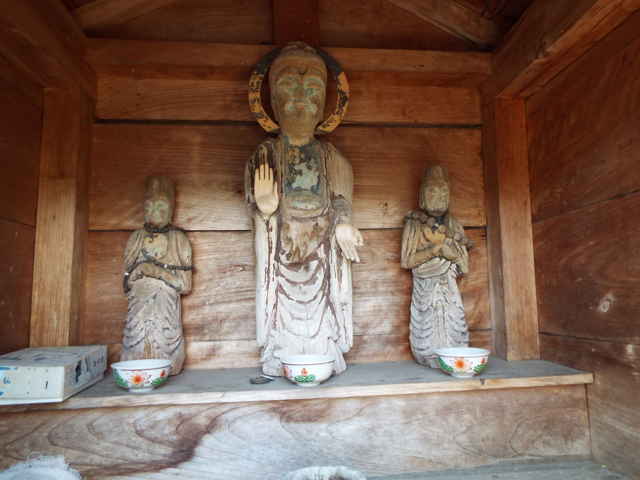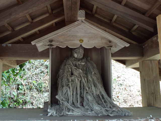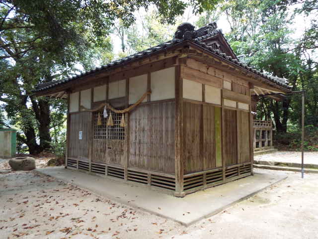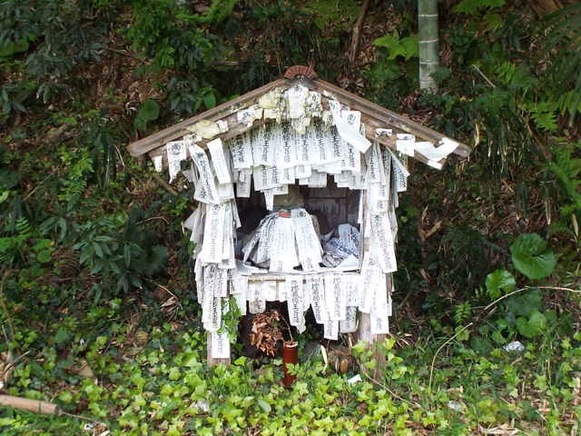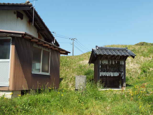 | 今日は、宍道町の神社を周ることにして、亀島神社、氷川神社、加茂社を訪ねて、一番西の伊甚神社から東へと周りました。 加茂社は以前に見た時には気がつきませんでしたが、小さな社の注連縄の奥に小さな扁額があり、加茂社と名前がわかりました。 丹部神社では近所の方がおられて、話を聞くことができました。「昔にあった神木の大杉は出雲大社の遷宮に用いられることになった。この前の川は当時は深く、この川で運び出されたが、『私は出雲大社よりも格が上なので、出雲大社の用材にはならない』と言って、海に沈んでしまわれた。」とのことでした。 大森神社から北へ下がる時に坂口集落の裏の山の斜面に小さなお堂のようなものが見えました。行ってみようと思いましたが、線路を越える道がなく、再度農道へ帰って線路高架を北へ抜けると集落への道がありました。山の斜面を上がると、小さなお堂があり仏像が祀られていました。近くの方に話を聞くと、「近くの個人の家のもので、大日さんだ。」とのことでした。仏像の形からは、大日如来ではなく、阿弥陀如来に似ているように思われます。 佐為神社から下倉への山越えの道の峠付近に、2個の地蔵石詞があり、それぞれに石地蔵が納められていました。山陰道の法斜面の上の舗装された場所になります。 松江の神社 |