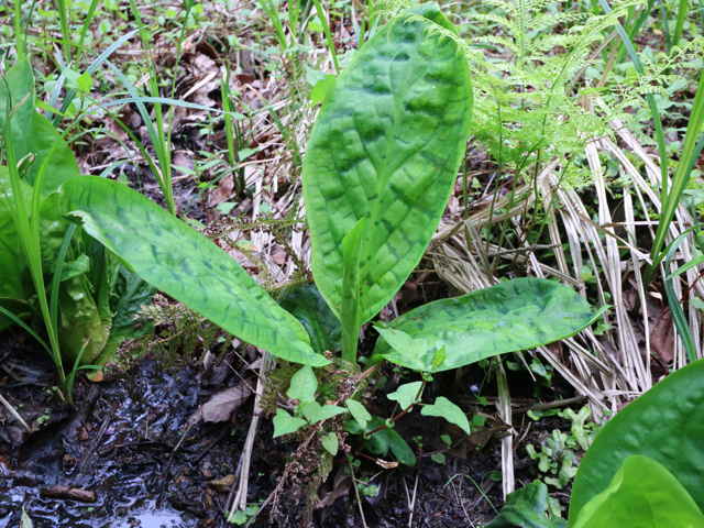 | 去年見かけた不明の植物の確認に行きました。花の咲く様子もなく、ミズバショウに似ているようにも見えますが、不明です。 |