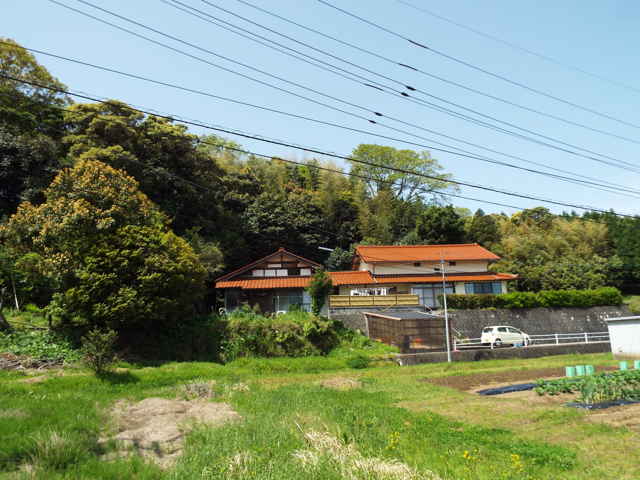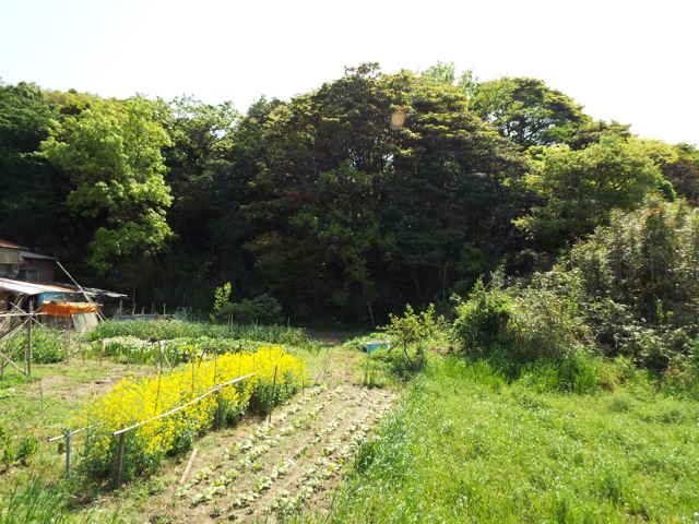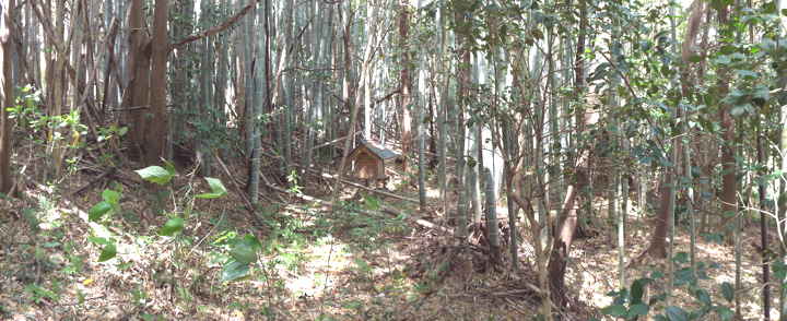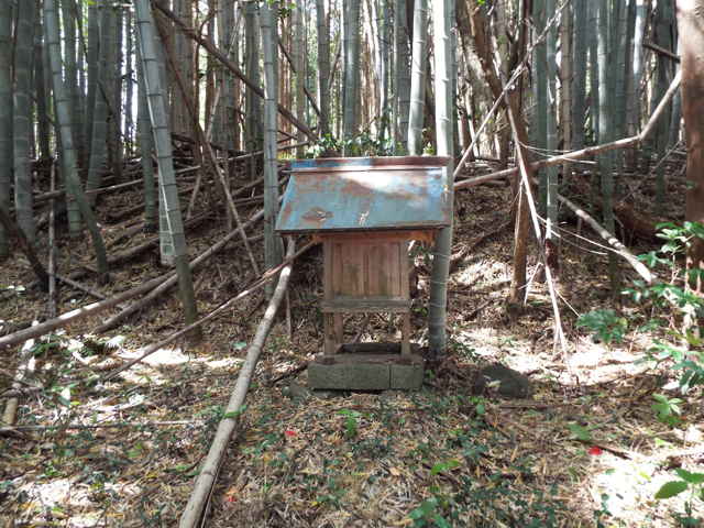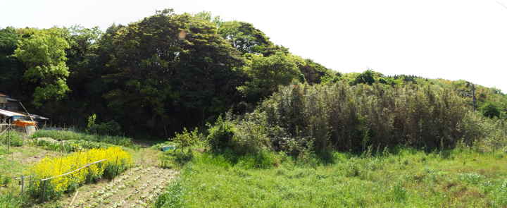 民家の後ろの竹藪へ向かう。 |