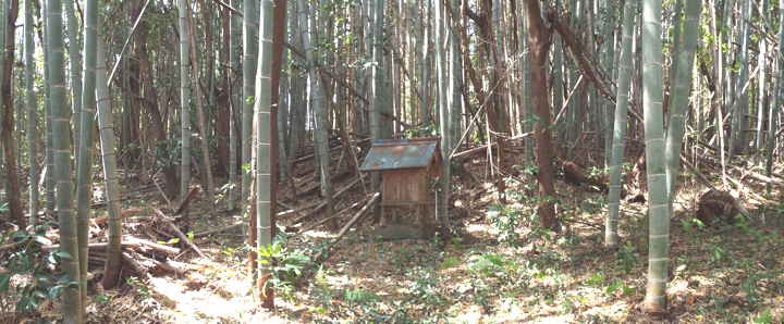 奥に祠が見える。 |