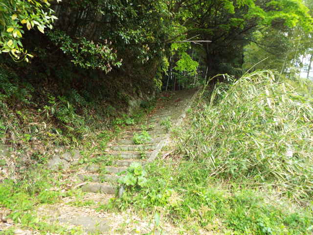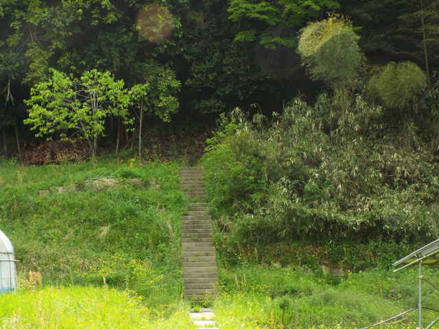 稲荷神社は、明治期に玉作湯神社に合祀されていますが、旧社地は玉造字天神免1017となっています。玉造1017は、玉作湯神社の向かい側にある「ふれあい公園」の地番になっています。公園のどのあたりにあったか、玉作湯神社に尋ねると、「公園への入り口の石段下のあたりにあった。」とのことでした。周辺の地番を調べると、公園入口の両隣の地番が、1016と1018なので、この通路からが公園敷地で、1017となるのでしょう。この公園入口あたりにあったということです。 |