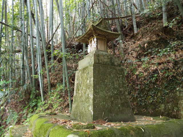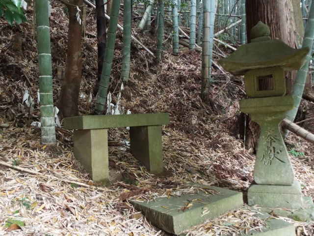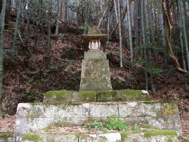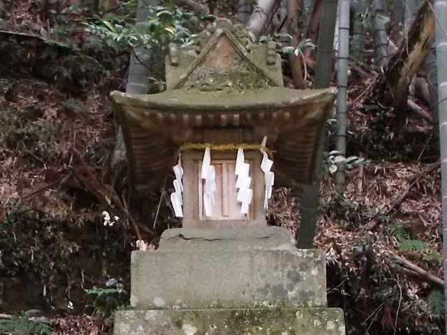 宝神社は玉湯町史によると、林村字宝神平にありましたが、明治40年に布宇神社に合祀されています。布宇神社に跡地の場所を尋ねると、「柳井の公会所の裏山にあって、今でも祀られている。」とのことでした。合祀された後、いつの頃か、小さな石祠が作られたものと思われます。 |