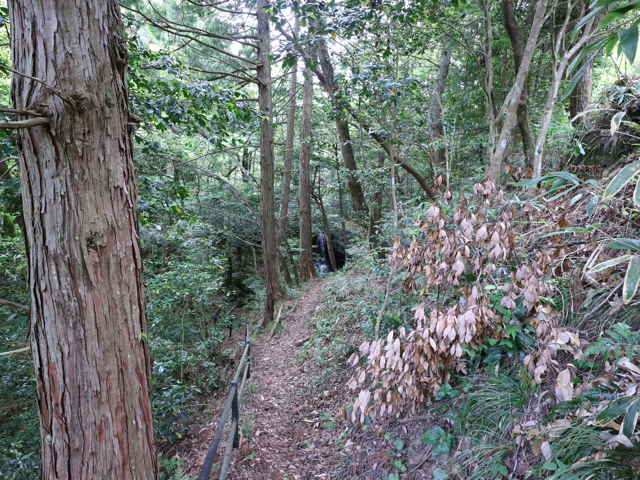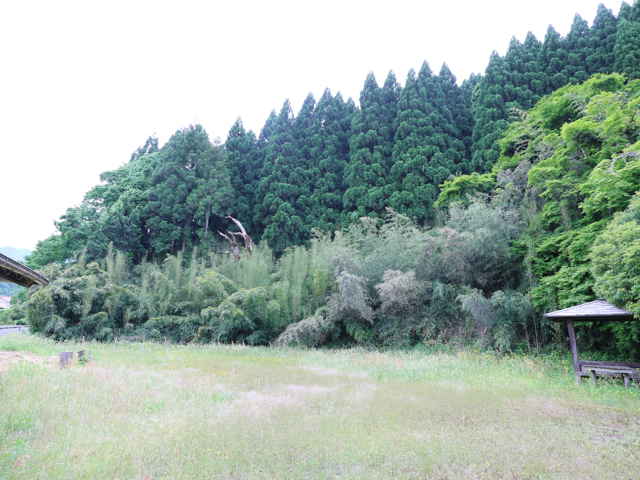 山際に細い竹が密生している。 |