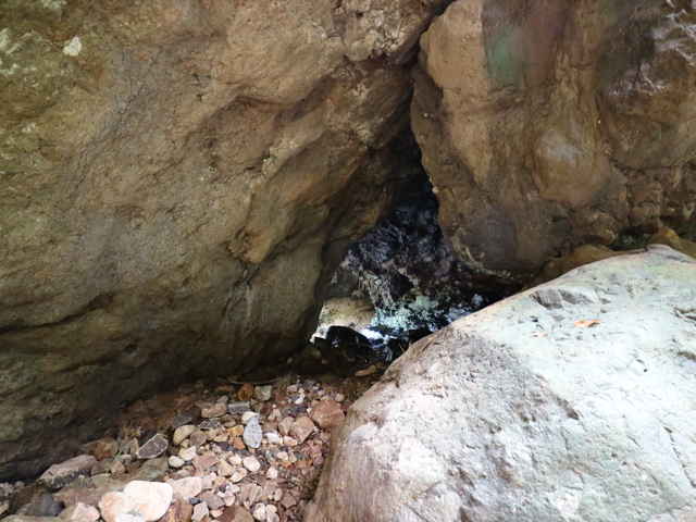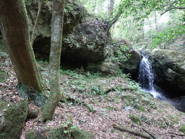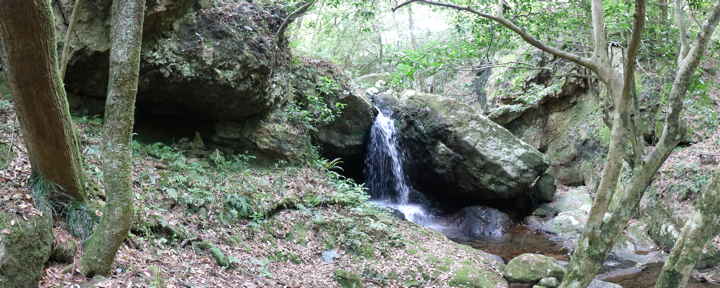 | 滝の左に、大きな岩がある。 | 大きな岩の下部に岩穴がある。 | |