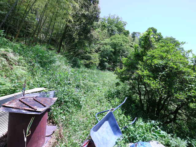 民家の前から山へ向かう。 | 草が多くなる。 |