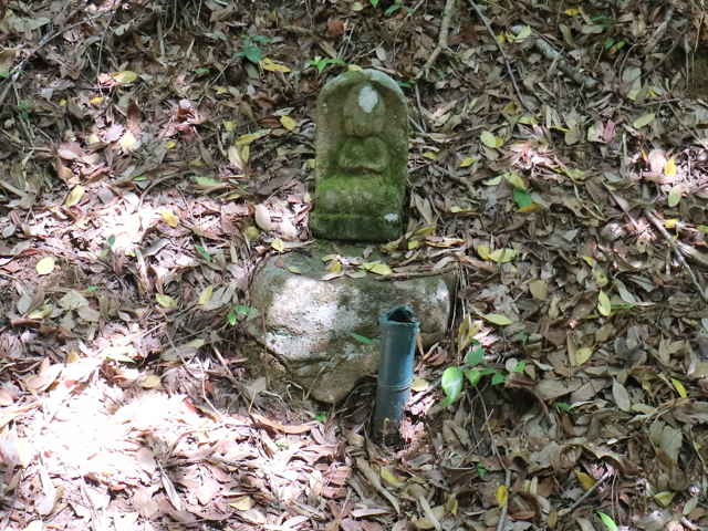 | 左へ折れて尾根へ向かう。 | 尾根を右へ進む。 | 道端に石地蔵がある。 |