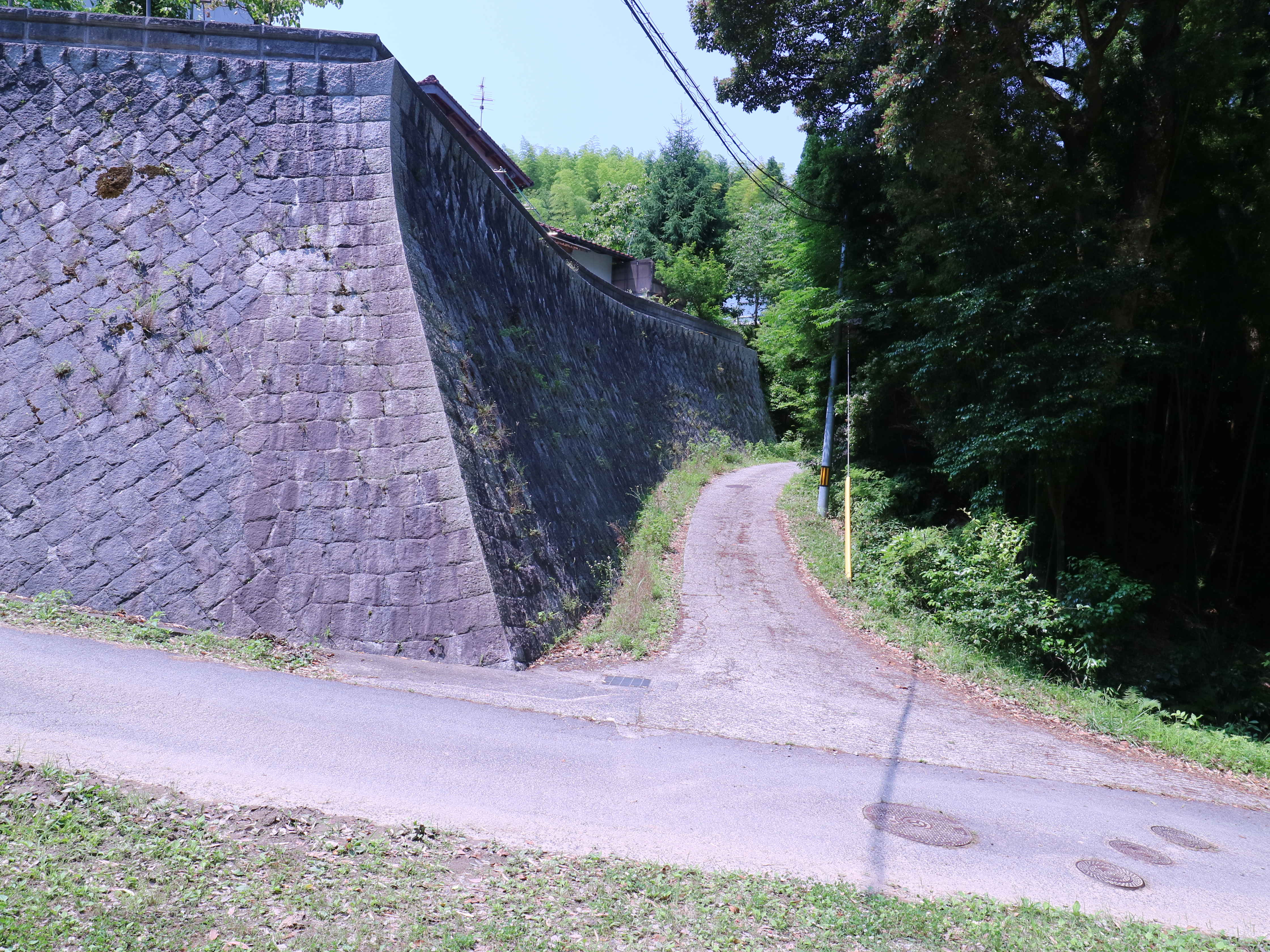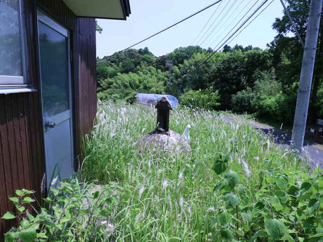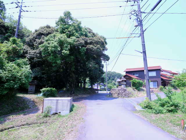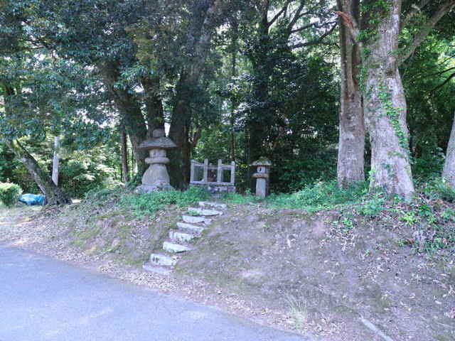 | 山へ向かって道が上がっている。 | 参道脇に荒神が祀られている。 | |
