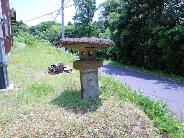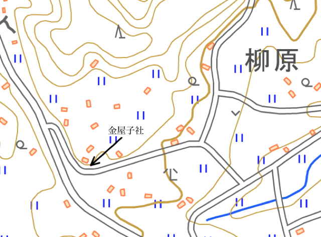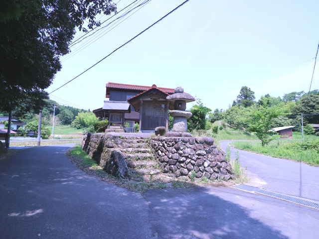 柳原地区の西端が広域農道に接する付近にあります。石垣の上に歳徳神と並んでおり、大きな石灯籠も立っています。道を挟んだ向かいには大日堂と柳原上組で祀る大日荒神があります。 「金屋子社 仝所(※柳原字大日)にあり、社殿三尺に四尺大鳥造、祭神金山彦命、柳原上組にて之をまつる。」(忌部村誌) |
