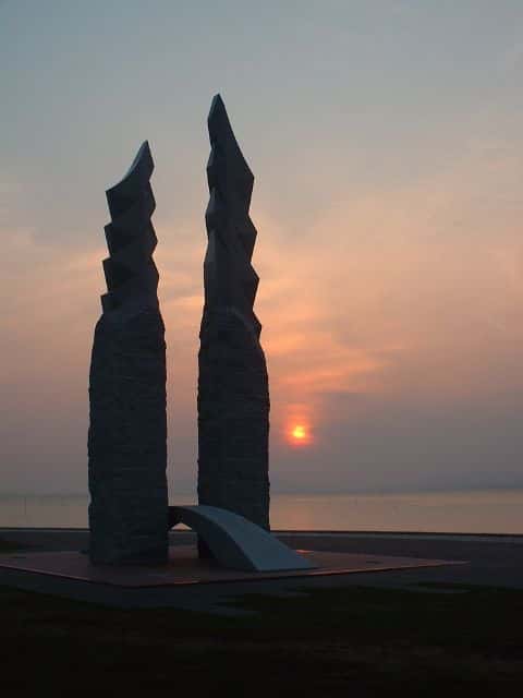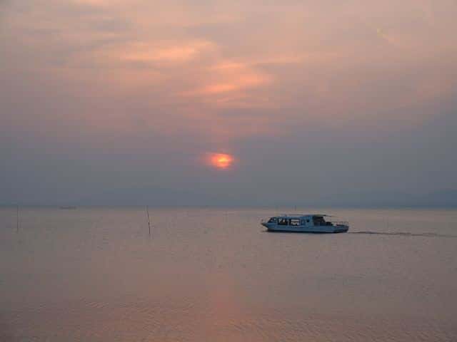 | 宍道湖の夕日 | 宍道湖の夕日と 遊覧船 |