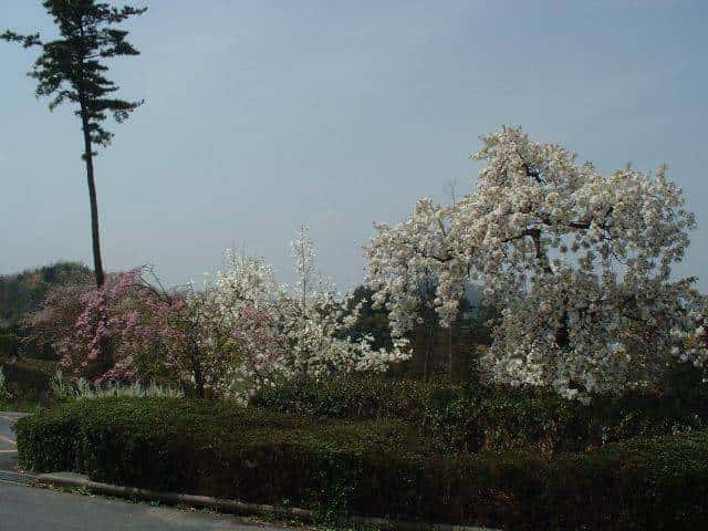 | 総合運動公園のコブシの花が満開となって、道の両側を飾っています。道を歩くと何とも甘い香りが漂ってきます。桜の花もいろいろな種類があるようで、八重桜、枝垂桜と色も華やかです。