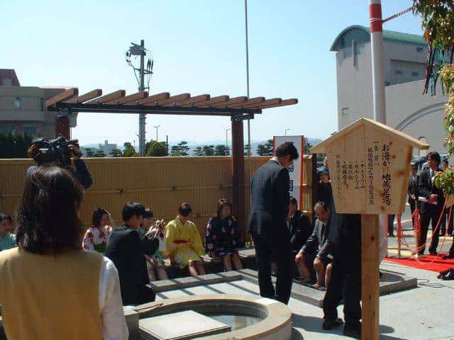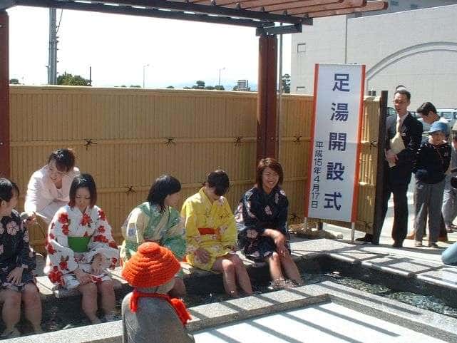 | 今日は、松江しんじ湖温泉駅の前にできた足湯の紹介です。しんじ湖温泉の入口にある、一畑電鉄松江しんじ湖温泉駅の前に足湯ができました。しんじ湖温泉の温泉を引いた、足湯で、温度は40度のお湯となっています。早速足を浸けてきましたが、ちょうどいいお湯加減で、気持ちが良い温度ではないかと思いました。 |