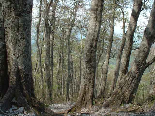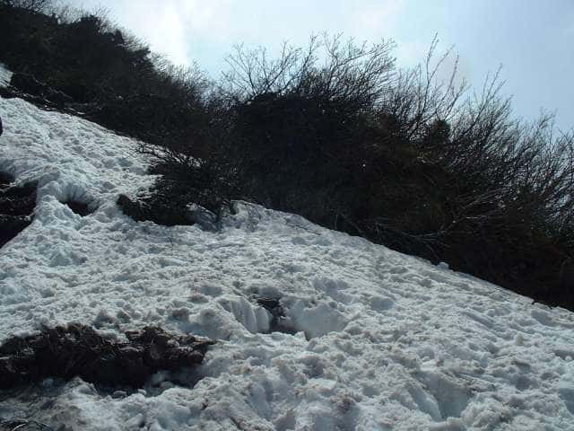 | 今日は、大山へ出かけることにしました。電車で米子へ、バスで大山寺までいきました。片道電車570円、バス800円です。大山寺で昼食に大山おこわ定食を食べましたが、いまいちでした。大山は新緑がとってもきれいで、秋の紅葉かと見間違うほど鮮やかな感じにも見えました。夏山登山道から上がり、6合目までくると、見晴しがよくなります。この上には今年は雪が多く、道を雪が覆っていました。時間もないので、ここからゆっくりと下山することにしました。下山は途中で右へと折れ、行者谷を下りることに。下りた元谷にも多くの雪が残っていました。今年の冬の雪は例年以上に降ったようです。ここから大山寺へお参りをして帰りました。イワカガミ、ダイセンキスミレ、エンレイソウなどに出会うことができました。 |